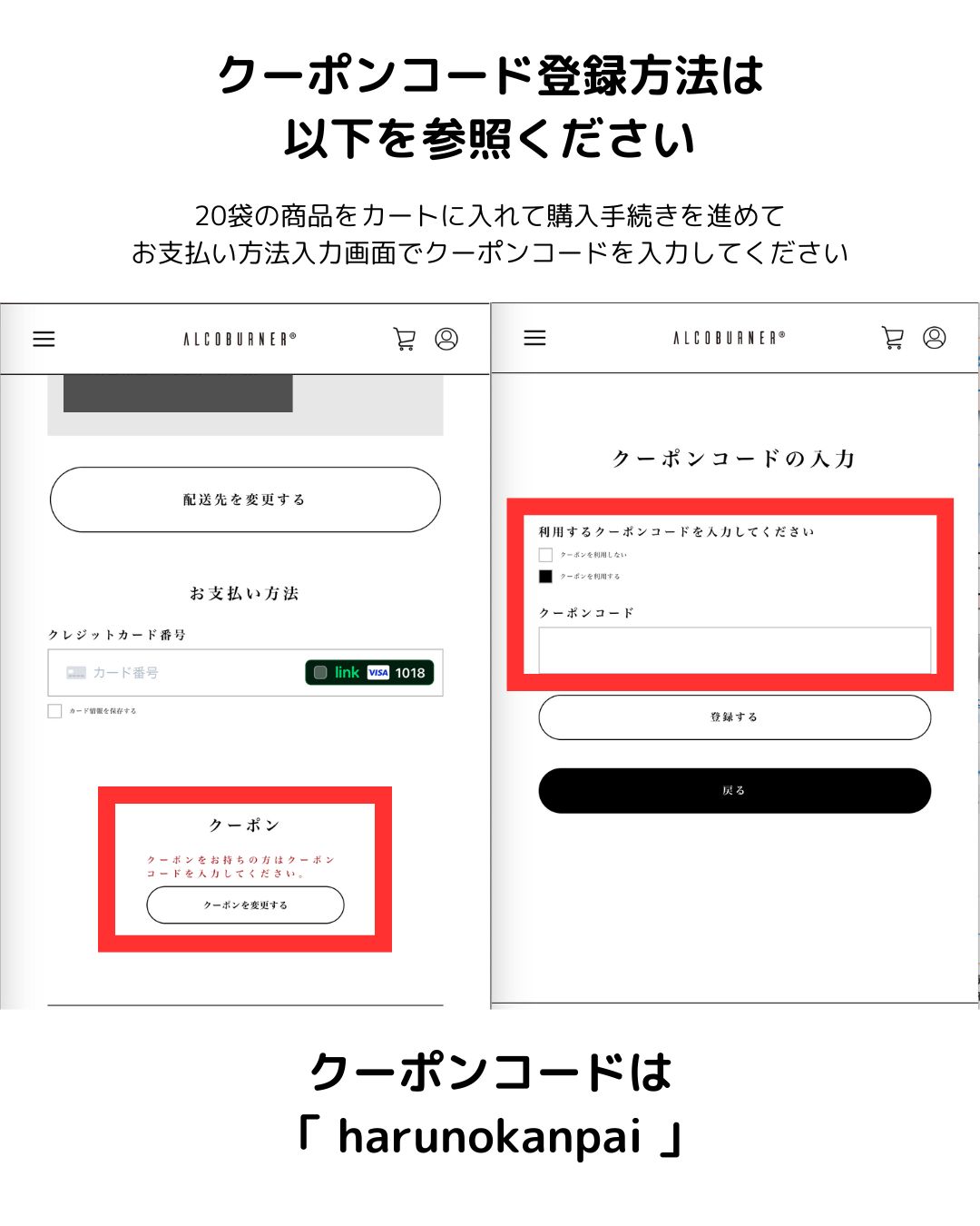クーポンコード【 harunokanpai 】https://alcoburner.co.jp